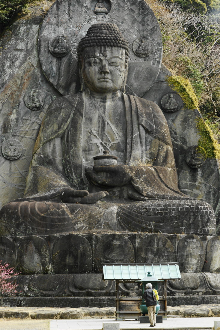 昨日、今日と千葉県は天気に恵まれました。皆さんご存知ですか?千葉県には標高500mを超える山が存在しないことを。でも不思議と魅力ある山が多いのですよ。その中でも観光の名所になっている山が内房は鋸山でっす。ここには日本寺という寺があります。山頂には地獄覗きの展望台。今日はその鋸山を約4時間散策してきました。1500羅漢、大仏、百尺観音など名所が沢山あります。岩山の斜面は意外と急峻で結構厳しい山です。散策路も結構きついです。古い参道も探しながら山の中にも入り多少の冒険もしてきました。ただ途中で行き止まりになるなどで仕方なく整備された遊歩道に戻りましたが。この道草は結構疲れました。良い運動にはなりましたけど。