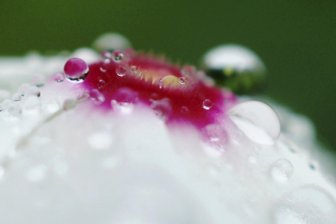 梅雨本番。千葉県は幸い今日は曇りで雨にはなりませんでしたが、今週の天気予報では雨のマ-クが続きます。梅雨と言えばアジサイですが、もう一つ水滴のィメ-ジがあります。水滴と言えば蜘蛛の巣のそれ。雨が降ると出かけるのが億劫になりますが、身近な所に「美」が有ります。この写真は家の日日花に付着した水滴ですが、マクロレンズで限界に挑戦してみました。如何ですか?綺麗でしょ!