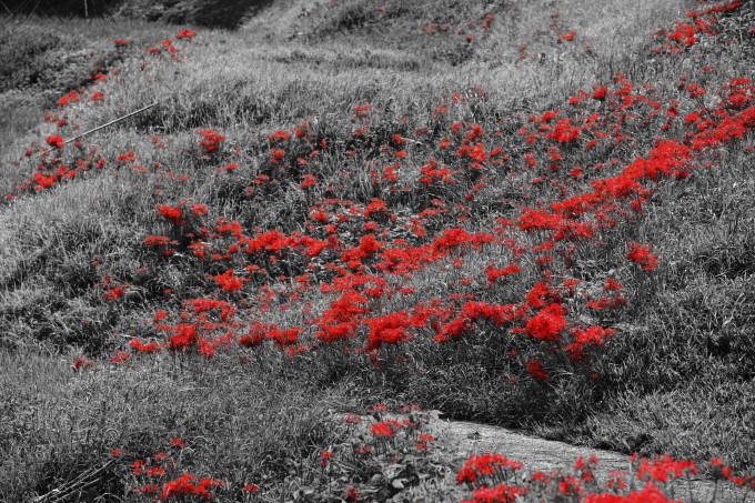 早いもので彼岸を迎えました。この時期になると必ず咲くのは「彼岸花」曼珠沙華とも言いますね。最近は良く見かける花になりましたが、白や黄色も多くみられるようになりました。赤は不気味な色合いですが、白や黄色は不気味さがないです。花の形は独特で、彼岸に咲くからお墓のィメ-ジが付きものです。決して恵まれた花とは言い難いですよね。それに、毒花ですからイメ-ジダウンに拍車をかけています。ここは、千葉県では有名な大山千枚田と言うところです。