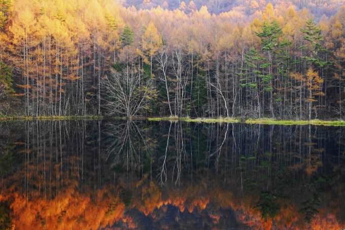 11月の3日長野県蓼科、あの東山画伯が描いた御射鹿池の紅葉を撮影して来ました。標高1500Mの紅葉は終わりに近づいていましたが、それでも静かな池と相まって美しい輪郭を残していました。ピ-クは10月下旬頃と思います。秋の御射鹿池は初めてですが、夏の風景も捨てがたいし、あの画伯の絵は夏の風景です。皆さんも一度行かれては如何ですか。茅野市街から車で30分程度です。ただ、モラルの悪い観光客の影響か、池のすべて立ち入り禁止です。駐車場完備です。