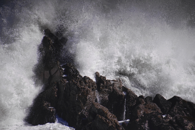 余波です。大波が観音岩にはじけた瞬間です。恐ろしく激しい波の姿です。