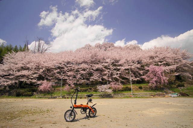 昨日から一本桜を求めて山梨市付近をグラフィットで散策。素晴らしい一本桜を撮影後、更に付近を散策。遠目から見ると正に桜の滝。せり上がり、山の上から、更に桜を包み込む様な素晴らしい風景に出会えました。近づくにつれ桜の滝はこんもりとした普通の桜山に変わってしまいましたが、でもそれは見事な桜山でした。