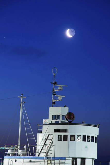 千葉県を越えられない。千葉県はサ-ファ-に不要不急でない観光は避けてと言い始めてる。自分は車中泊を決め込み、人と接触しないよう弁当とカップラ―メンを持参。そして撮影は人がいない場所、いわゆる穴場探しである。この写真は朝の4時半ごろ撮影したもの。当たり前だ、この時間は誰もいやしないよ。26日の月は形が良い。