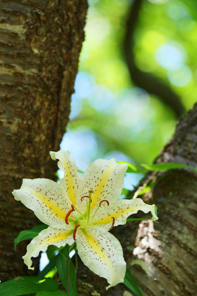 梅雨明けまじかの3連休み。東北地方では豪雨、それ以外の地域は猛暑。私の住む千葉県も猛暑。今年の夏は早い。夏を代表する花、ヤマユリの咲く房総の村を再び訪れた。至る所に咲くヤマユリの甘い香りが一面に漂い、緑濃い藪の中に白くそのユリは咲いていた。残念ながら「マムシに注意」と警告された藪の中には正直足を踏み込む勇気はなく、ユリの美しい姿をイメ-ジした通りには撮影できなかったが、見てください、盛りを迎えたユリの花です。