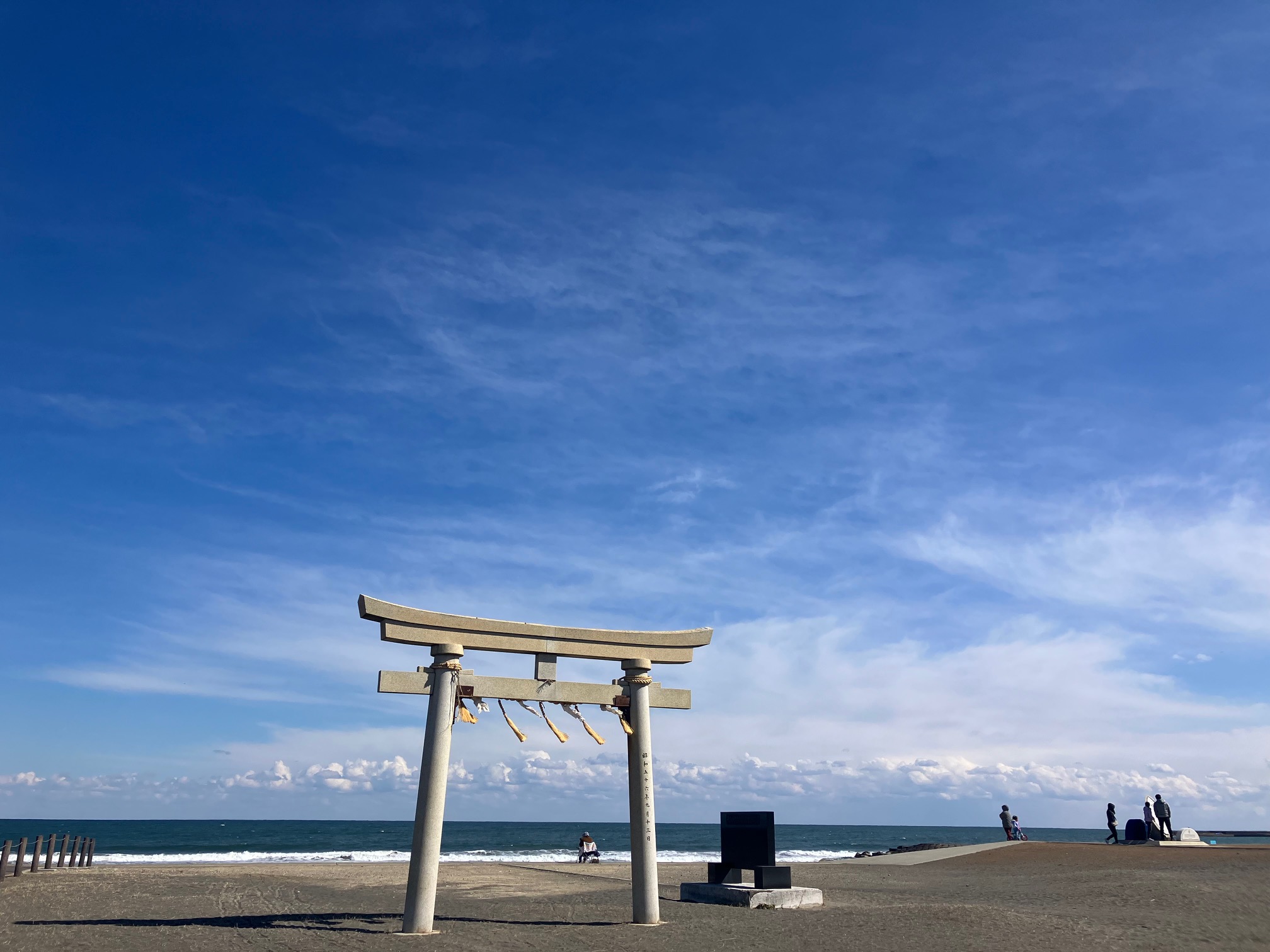 この写真は千葉県一宮町の鶴ケ崎の鳥居、星空が綺麗で有名な場所です。それよりもサーファ-が遊べる場