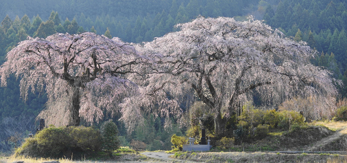 それは群馬県富岡市の菅原地区にある枝垂れ桜です。例年4月の第1週目が見頃になりますが、今年は開花が早いのでしょうか?