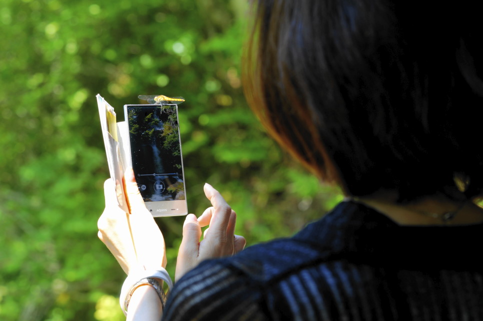 この三連休、皆さんは如何お過ごしでしたか?私はですね、日光へ一人旅を楽しんできました。竜頭の滝見櫓で偶然女性のスマホに赤とんぼが留まった瞬間を捉えました。その女性、私が写真を撮っているのに気付いていたようで、数秒そのまま動かずに協力してくれました。その後女性に声をかけては、お礼としてソフトクリ-ムをごちそうしてしまいました。それからその女性とは連絡はしていませんけど(笑)