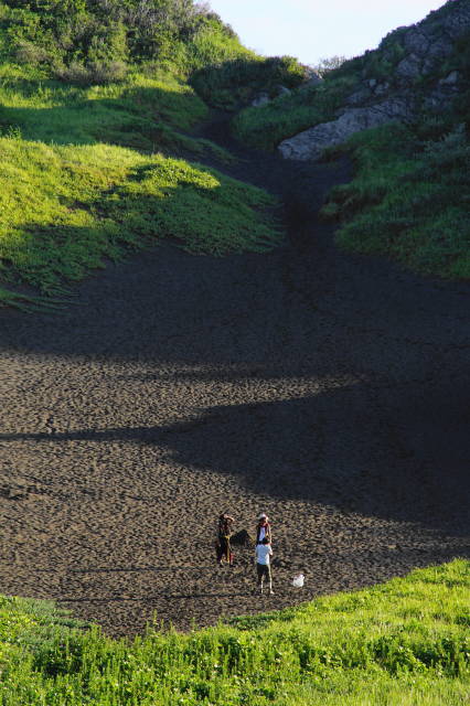 仕方なく来た道を戻り、もう少し山に近づくと進行方向右側に小さな駐車場を発見、その駐車場の先に観光協会で紹介されていた風景が見えた。ここか・・・思いの他小さな砂丘でした。