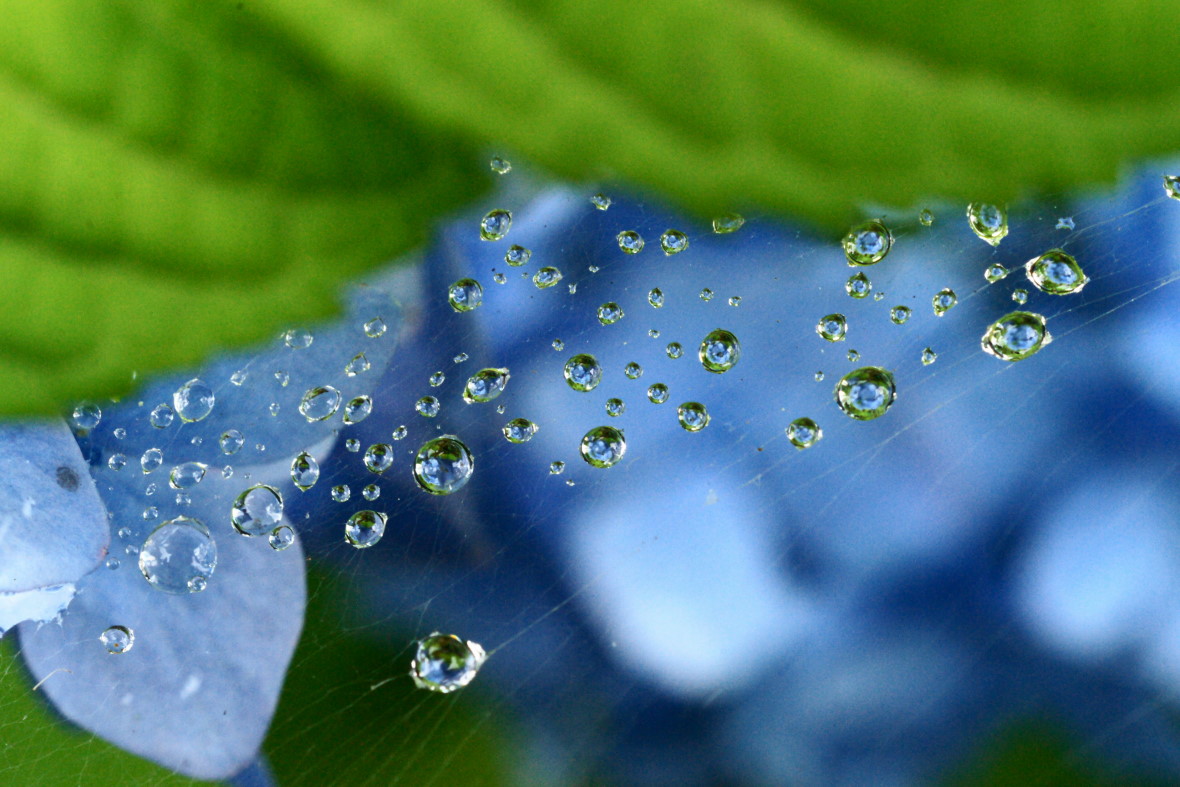 梅雨ですね。湿度が高いです。乾燥剤を主要なBOXに入れました。特にカメラレンズにカビが生えたら修理が厄介です。写真ですがこの季節には蜘蛛の巣を多く見かけます。蜘蛛が嫌いと言う方はご勘弁頂きたいのですが、写真的にみると蜘蛛の巣の水滴が美しくて、輝いていて大変魅力的なんですよ。特に霧雨の後はダイヤモンドを散りばめたように輝きます。今回も紫陽花とコラボさせましたがうっかりするととんでもない生き物に出会う時がありますから気を付けて下さい。先般は紫陽花の木の根元に長いものが動いていました。
