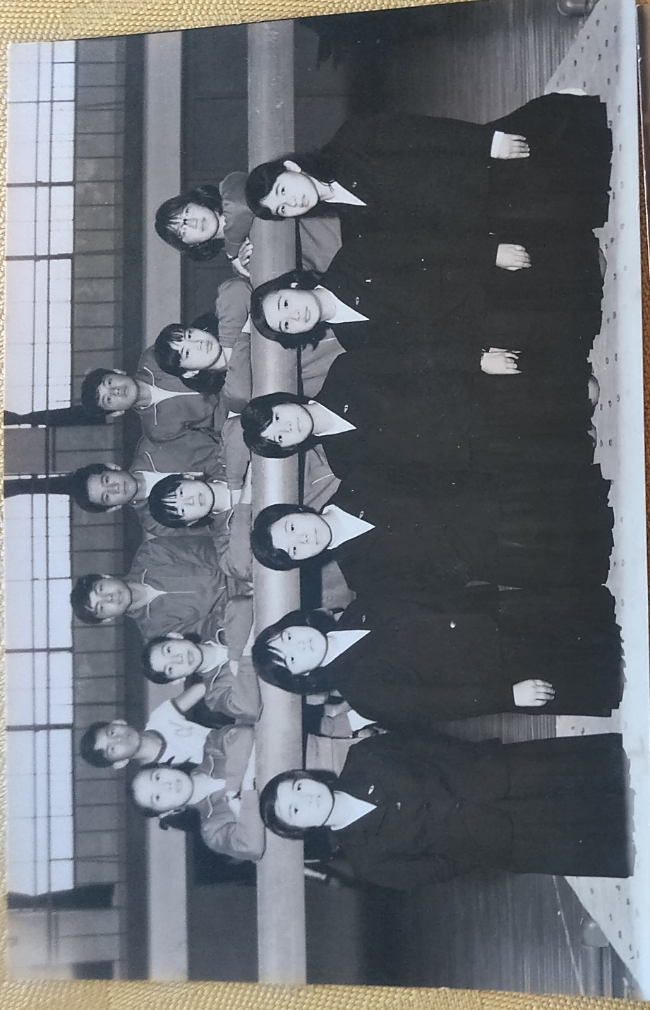 このニュ-スを聞いた元体操部の、今も時々会うのですが、写真が送られてきました。懐かしい写真です。自分は最後列の右端、送ってきた仲間は左から二人目です。