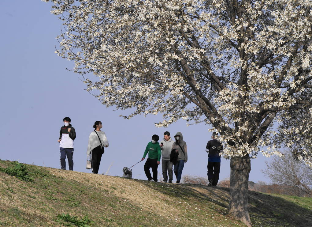 ソメイヨシノの前、川津桜の後にこの花は咲きます。これは手賀沼散策道路に面したコブシの大木。気温は21℃ほど、天気も上々、春の日差しがほもうきうきさせた様で多くの人たちが春の日和を楽しんでいました。間もなくソメイヨシノが咲きます。この散歩道には残念ながらソメイヨシノはありませんが、桜が咲くと夏遠からじ、時が一気に駆け巡ります。年齢が増すと残念ながら短い春と思います。