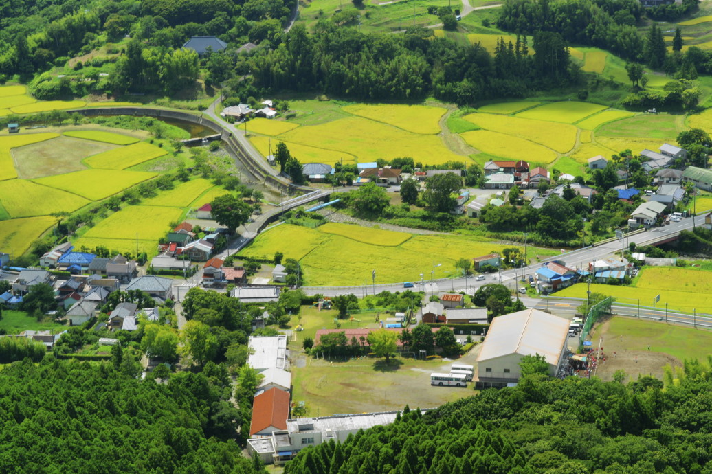 頂上は狭く、テ-ブルが一つ置かれているだけでした。天狗伝説もある信仰の山。今日と明日は少し仕事をします。この写真は伊予ヶ岳頂上から望む平久里の集落です。